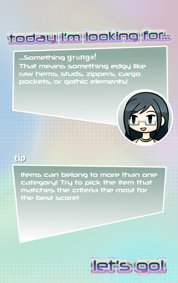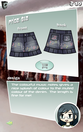 Welcome to Thrift Street! Help Saya find the best deals for denim skirts based on style criteria match, length, size and price! Do a good job and unlock a dress-up mini game! Woo!